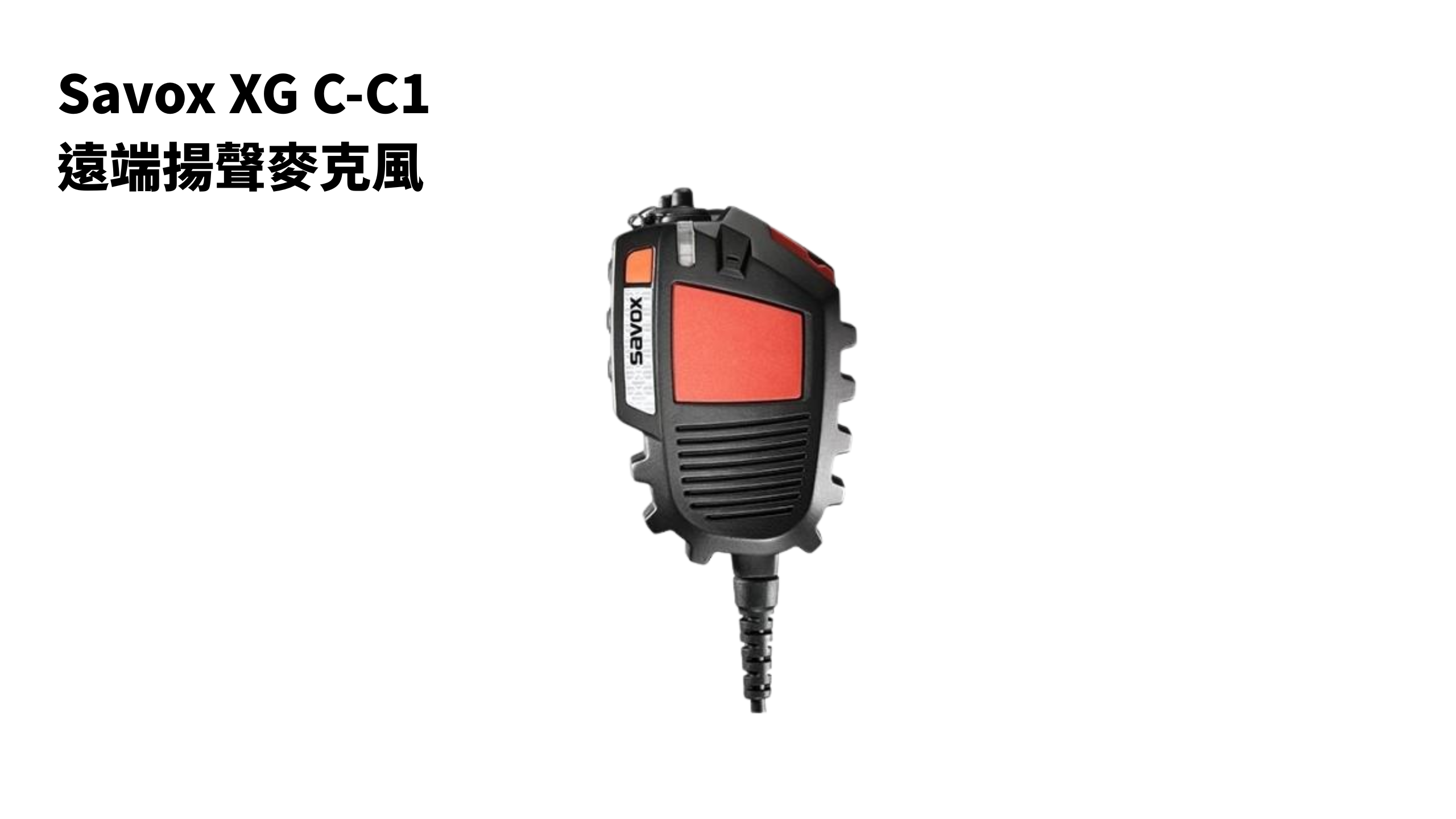 Savox XG C-C1 是 C-C550 的進階版本,同樣來自芬蘭原廠,在維持 IP67 防護與軍規耐用標準的基礎上,新增了擴音開關、警示燈與可編程緊急按鈕三項關鍵功能。無論是消防隊員在火場中快速示警,或是戴著安全帽的工程人員需要廣播指令,XG C-C1 都能在最需要的時刻發揮作用。